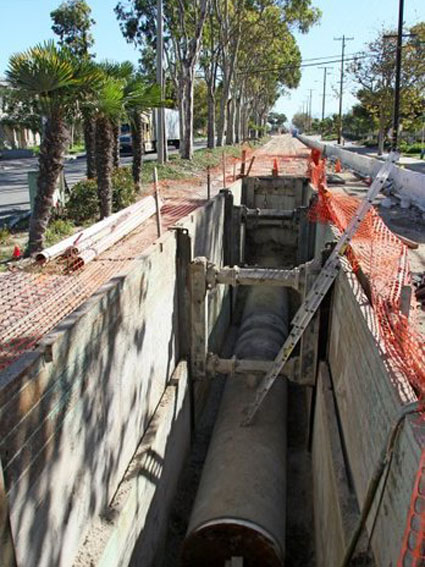 Perliter & Ingalsbe provided engineering services including planning, design, and construction support services for Phase 1E pipeline. The pipeline is located in unincorporated areas of the Ventura County and City of Port Hueneme, California. On east side, it begins near intersection of Edison Drive and Hueneme Road and ends near intersection of Ventura Road and Surfside Drive on west side in the City of Port Hueneme.