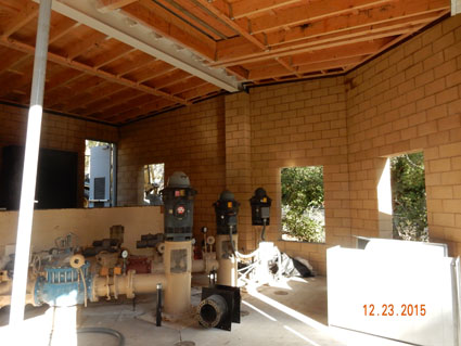 - Replace existing wall enclosure around pumps and diesel generator with a new masonry building with three large rooms and approximately, 1050 square feet area