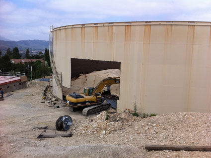 - Structural improvements, including addition of concrete ring beam, tank anchors, replacing deficient shell plate with new thicker shell plates, welding roofing members, etc.