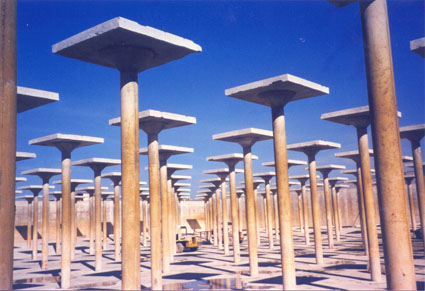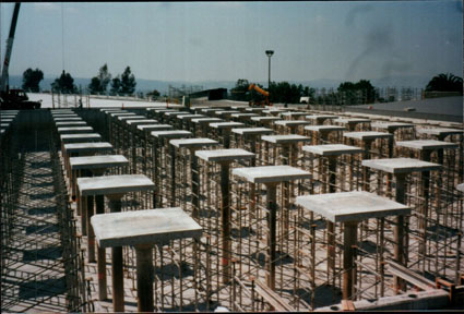 - Alternate repair methods were developed and evaluated to strengthen the existing reservoir roof structure through detailed structural and seismic analyses. It was decided to remove only a portion of the roof slab, leaving the columns and 8-foot by 8-foot sections of the roof intact at each column and placing a new concrete roof slab on top.